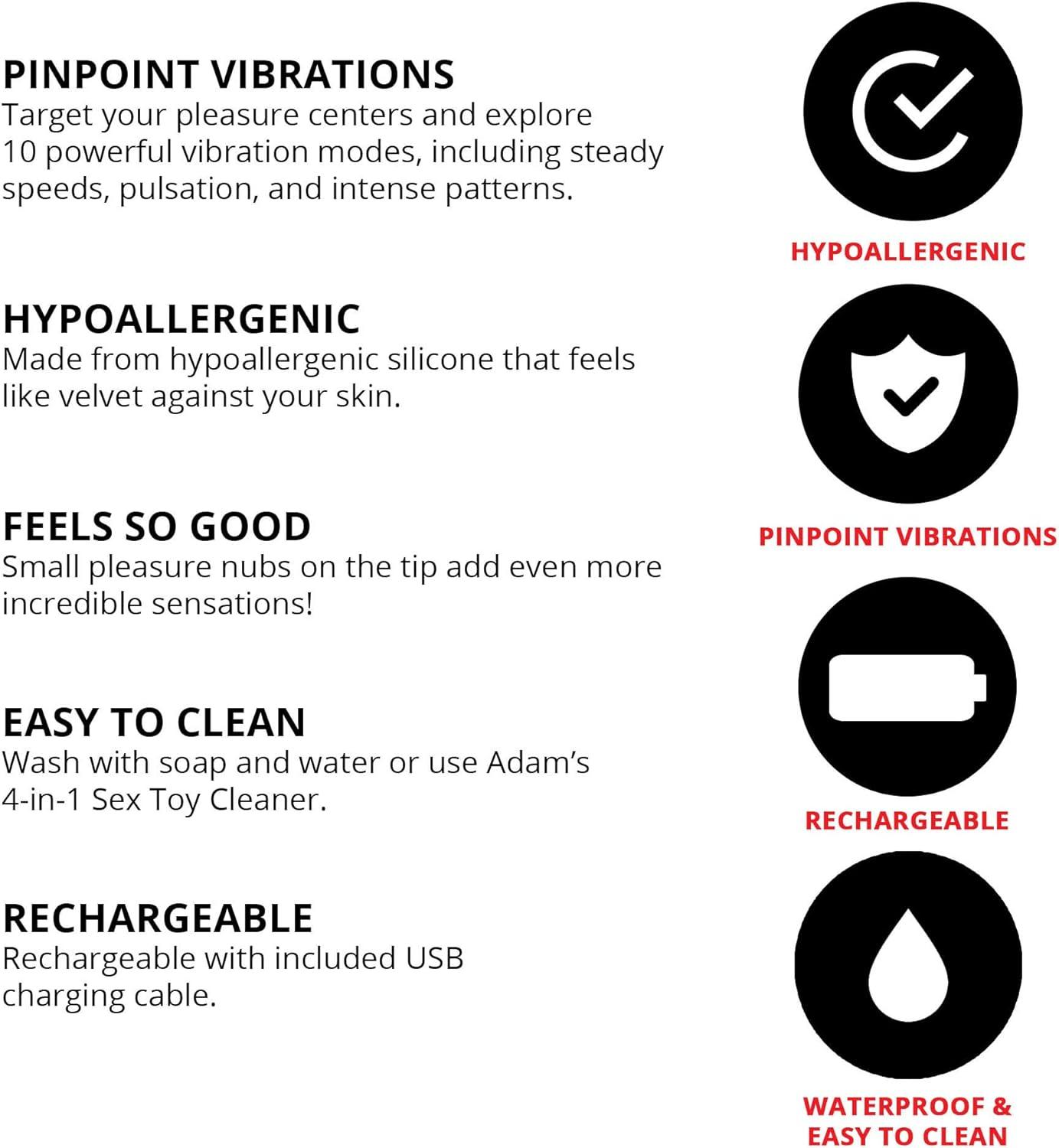 Adam and Eve 10 Function Silicone Rechargeable Finger Vibrator, 10 Speed Adjustable Stimulator, Insertable Bullet Sex Toy for Women, Waterproof Powerful Vibrations, Compact 3.39 Inch Design