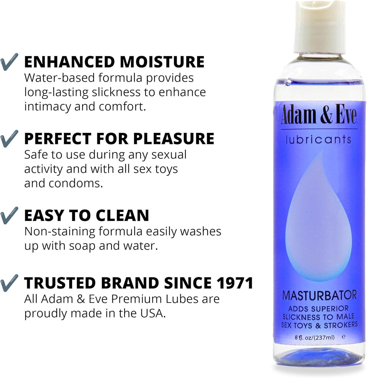 Adam and Eve Lube Water Based Gel 8 oz Adds Superior Slickness for Use with Toys and Strokers Latex Safe Non Staining Personal Lubricant Long Lasting Formula for Comfortable Use