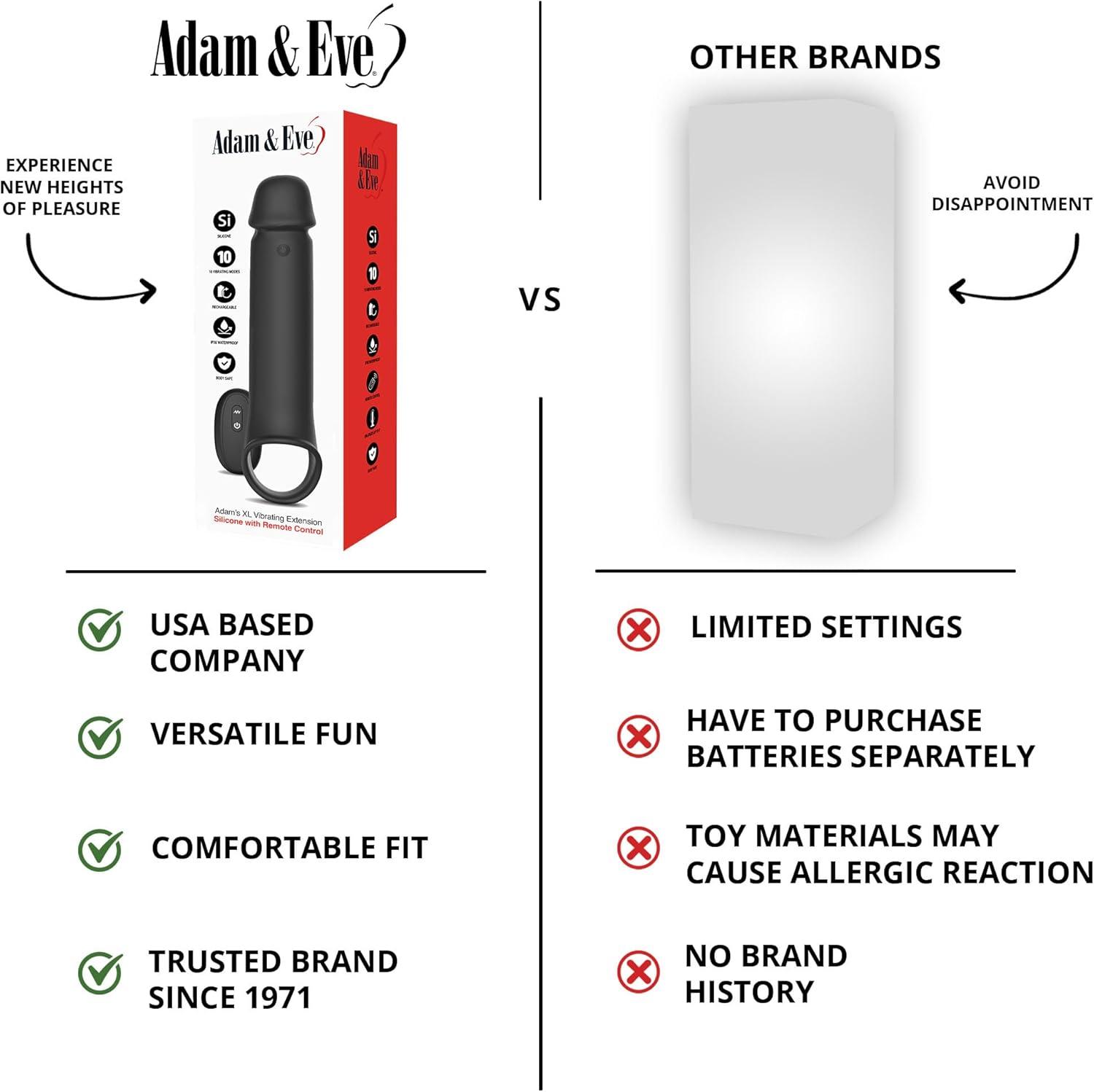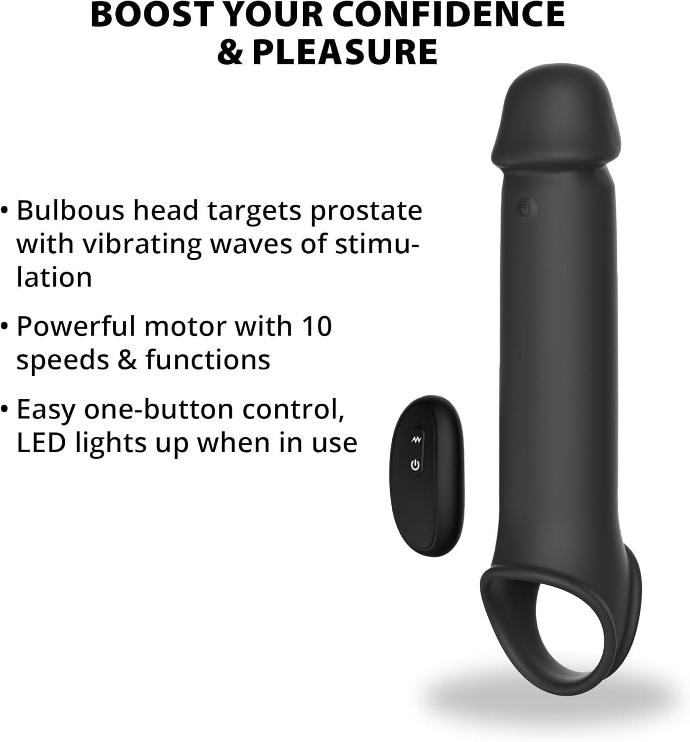 INSTANTLY ADD 3+ INCHES FOR MORE SATISFYING SEX: Enhance your erection with Adam & Eve’s XL Vibrating Extension. This premium penis sleeve boosts both length and girth instantly, giving you and your partner more to enjoy with every deep, satisfying thrust