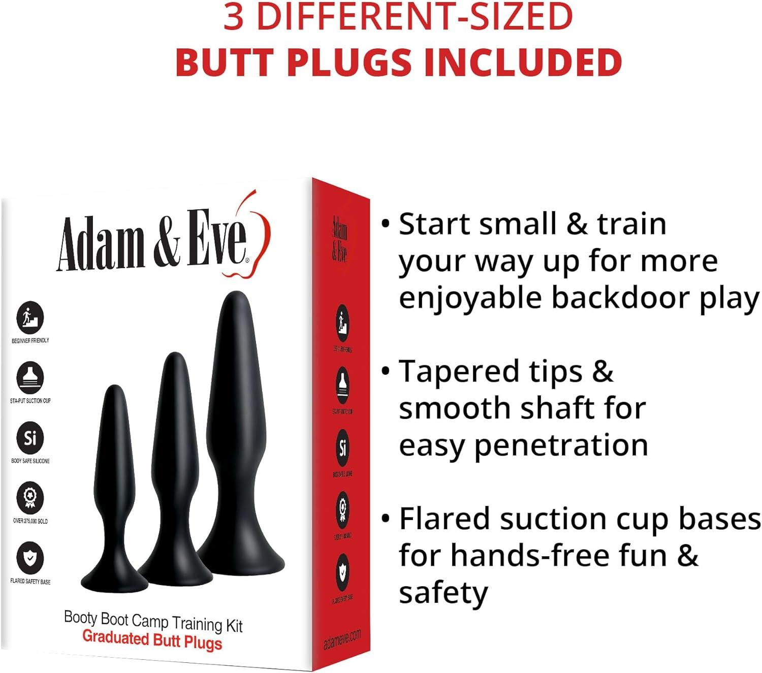 Adam & Eve Booty Boot Camp Anal Training Kit, Set of 3 Silicone Trainer Butt Plug Dildos, Waterproof Anal Plugs with Flared Suction Cup Bases, Great with Our Water Based Lube