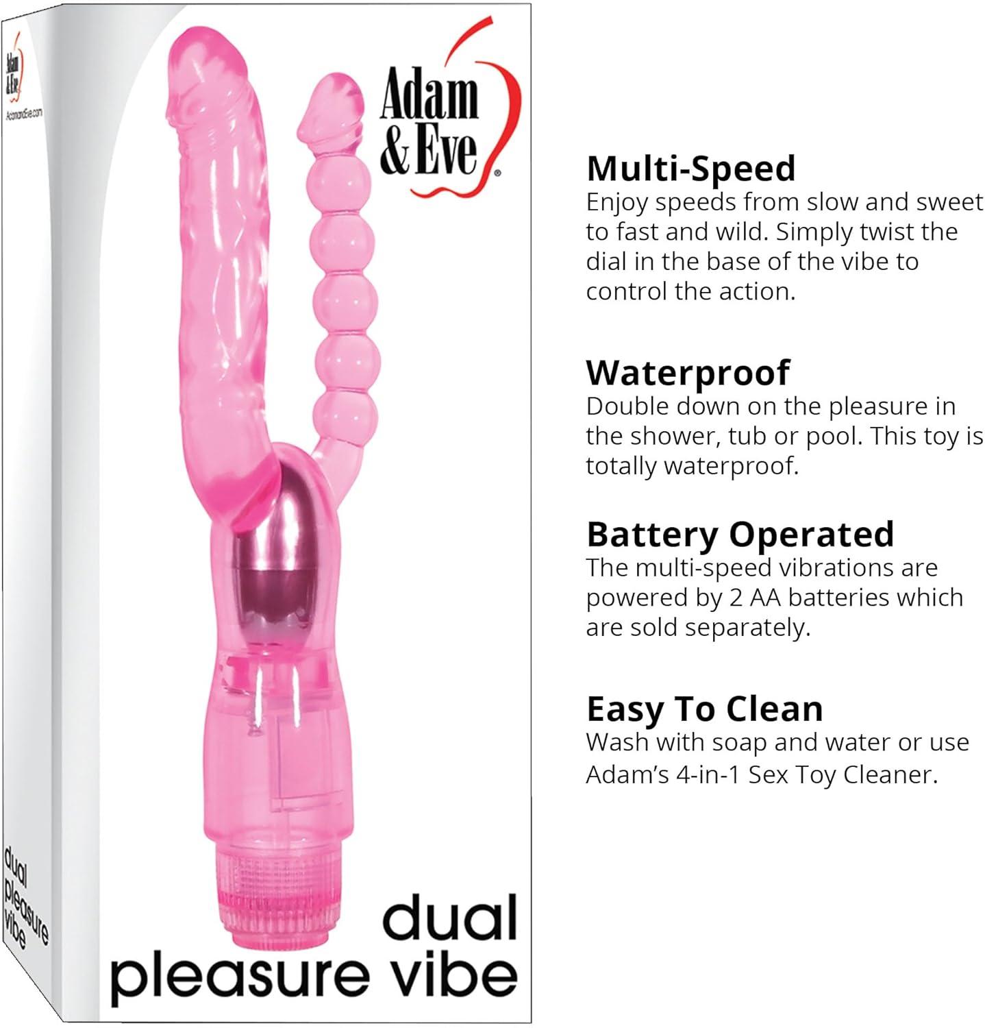 Adam & Eve Dual Pleasure Vibrator, Double Penetration Sex Toy with Realistic Shaft & Anal Beads, Multi Speed Vibration, Flexible TPR Material, Waterproof Adult Toy for Women, Couples, and Solo Play