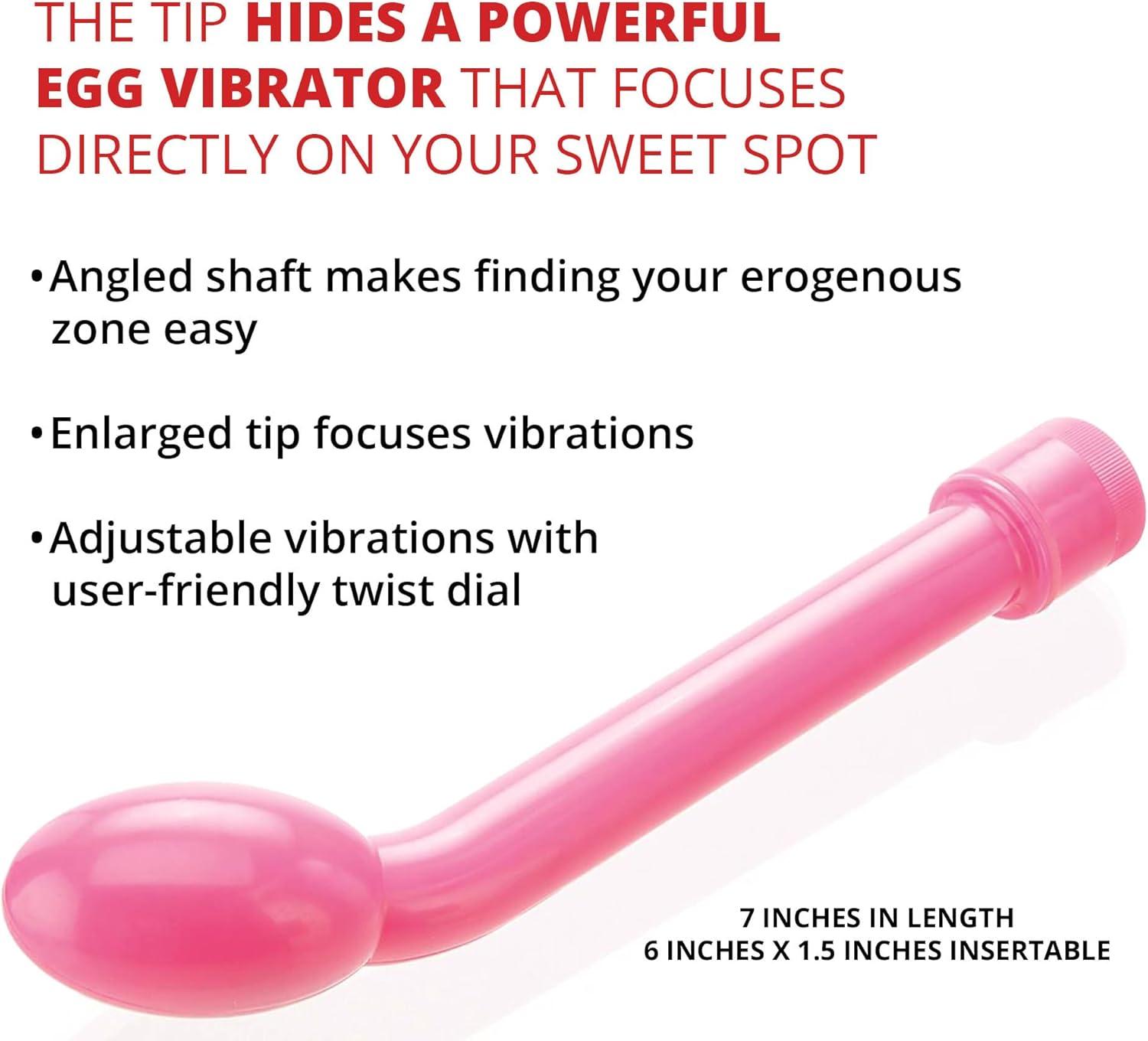 This classic, easy to use vibrator only does one thing, and it does it amazingly well! The G-Gasm Delight excels when it comes to G-Spot play. Its curved shape and enlarged tip make the elusive erogenous zone extremely easy to find. Just slip the vibe in with the tip pointing toward your belly. Then gently swirl it in a small circle until you strike G-Spot gold!