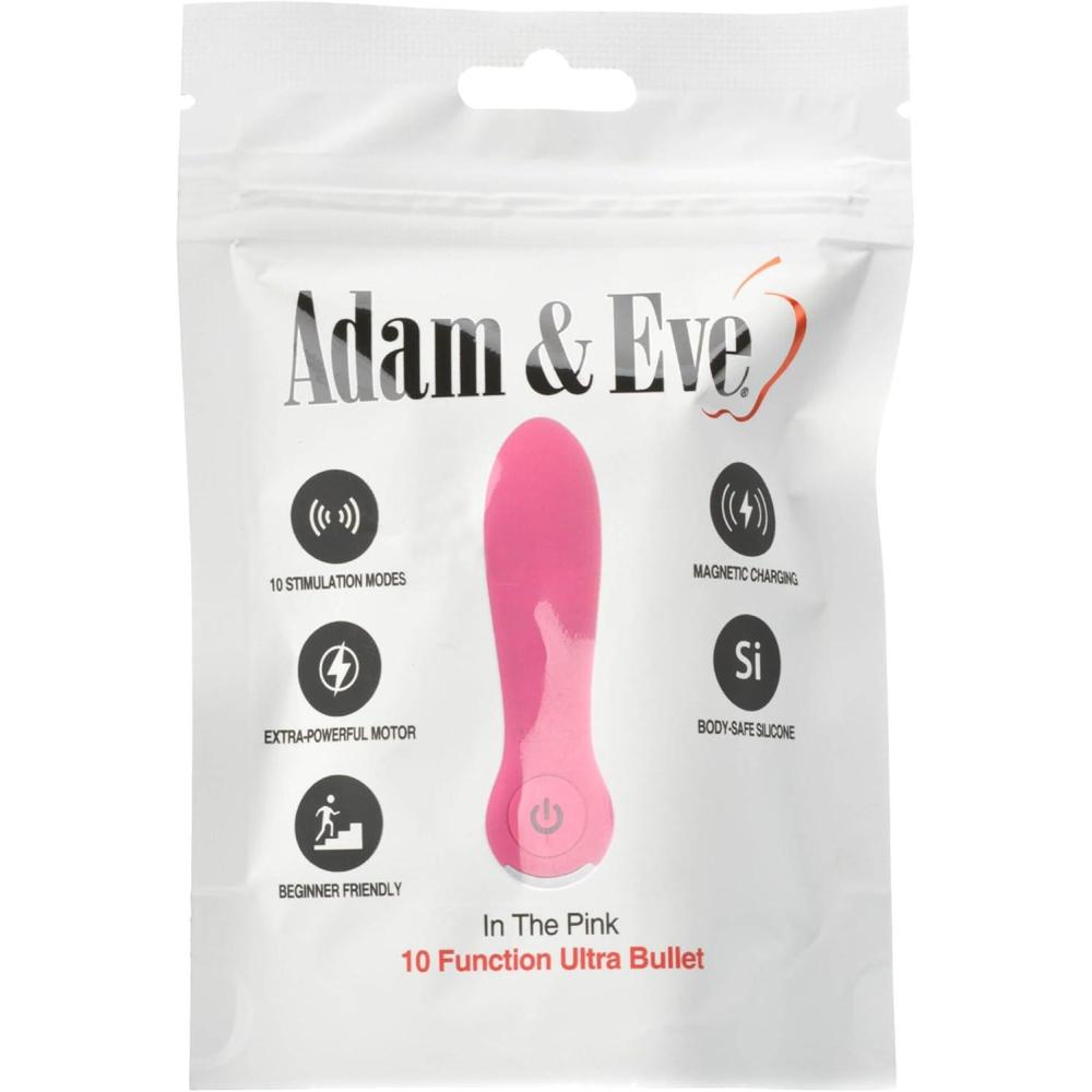 Adam & Eve in The Pink Rechargeable Ultra Bullet, Powerful Mini Vibrator, 10 Vibration Modes, Travel Sized, Body Safe Silicone, Waterproof Clitoral Stimulator, USB Charging, 60 to 100 Min Runtime