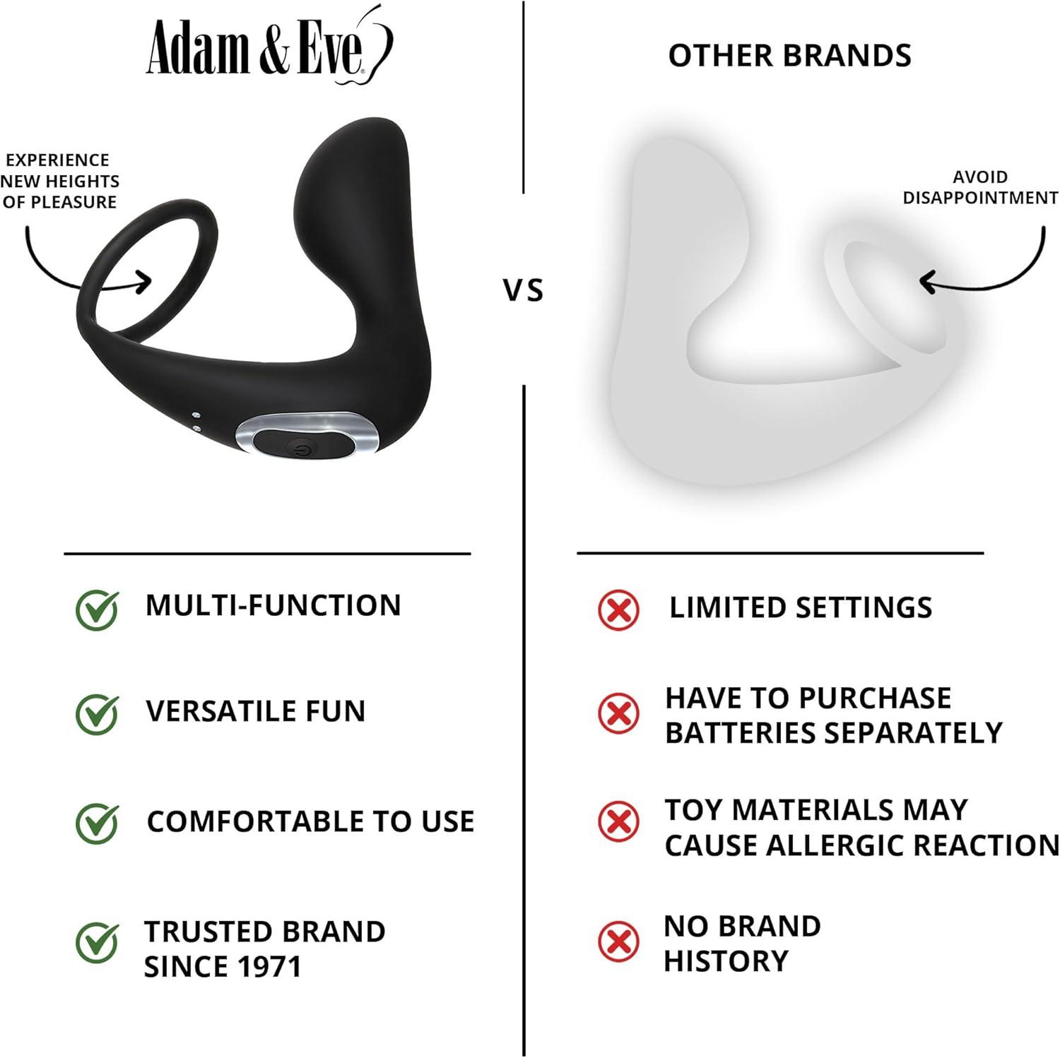 Adam & Eve Rechargeable Prostate Massager with C Ring Vibrating Prostate Stimulator for Men 10 Powerful Modes Stretchy Cock Ring for Harder Erections Waterproof and USB Rechargeable Couples Sex Toy