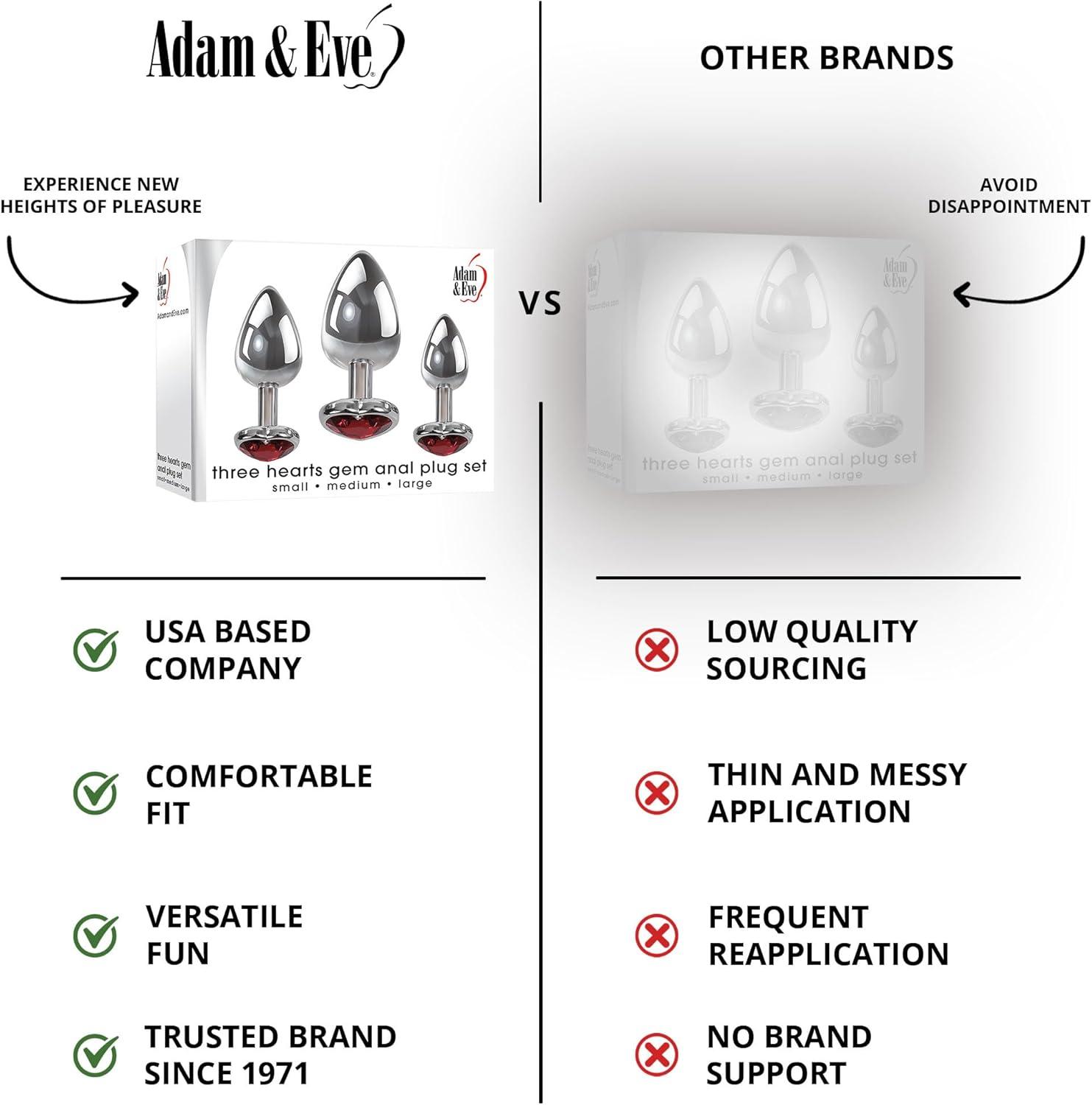 Adam & Eve Three Hearts Gem Anal Plug Set, 3 Piece Polished Aluminum Butt Plug Kit with Sparkling Jewel Bases, Small Medium Large Sizes, Tapered Tips for Easy Insertion, Includes Velvet Storage Bag
