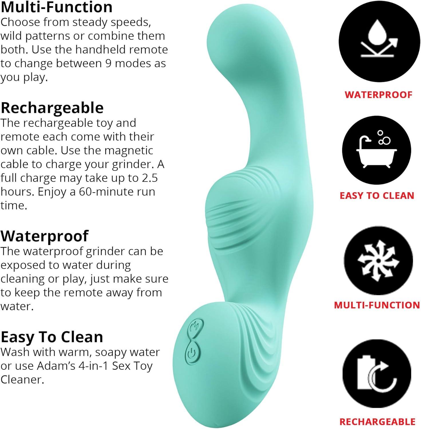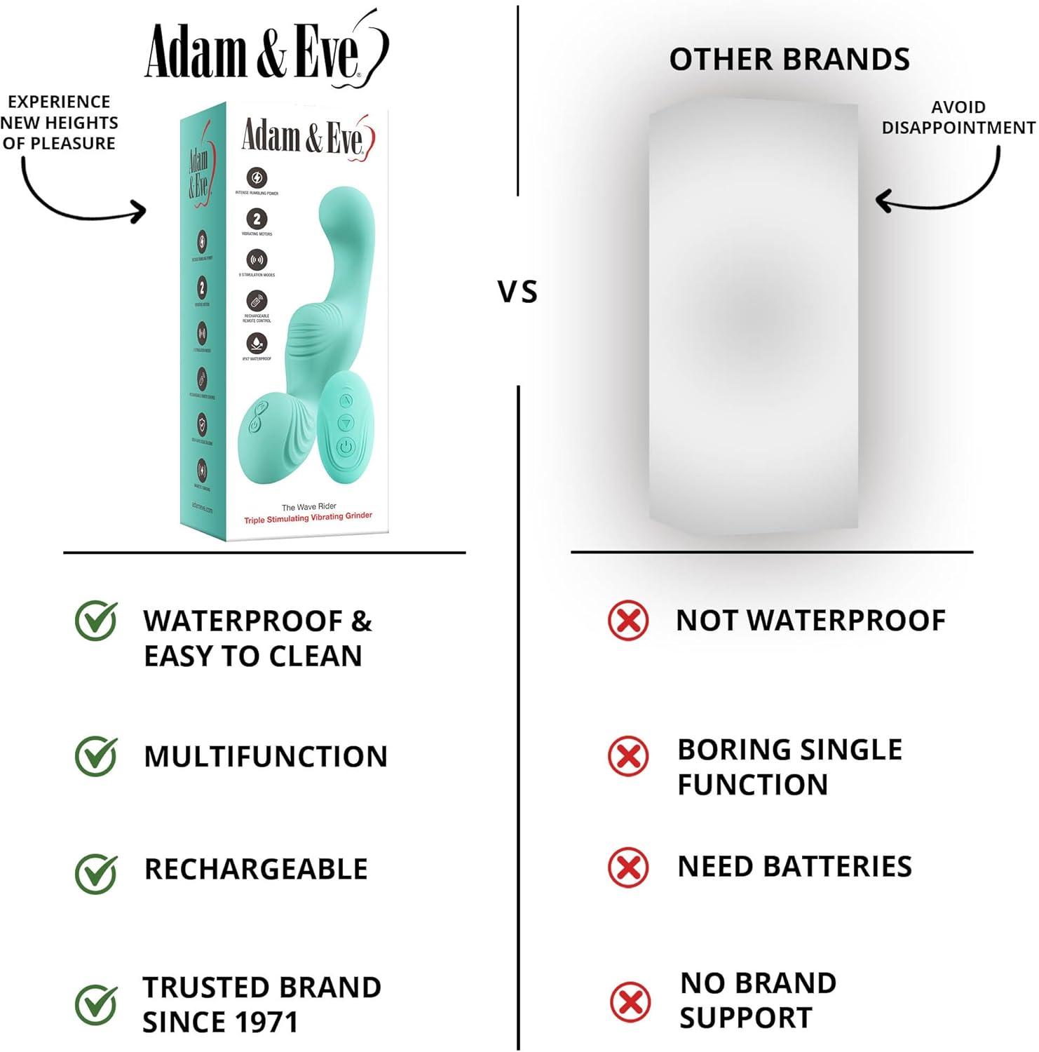 Adam & Eve Wave Rider Vibrating Grinder, Rumbly Contoured Silicone Vibrator with Dual Motors, Remote Control, Textured Grinding Surface, 9 Modes, Waterproof, Rechargeable, for Intense Pleasure